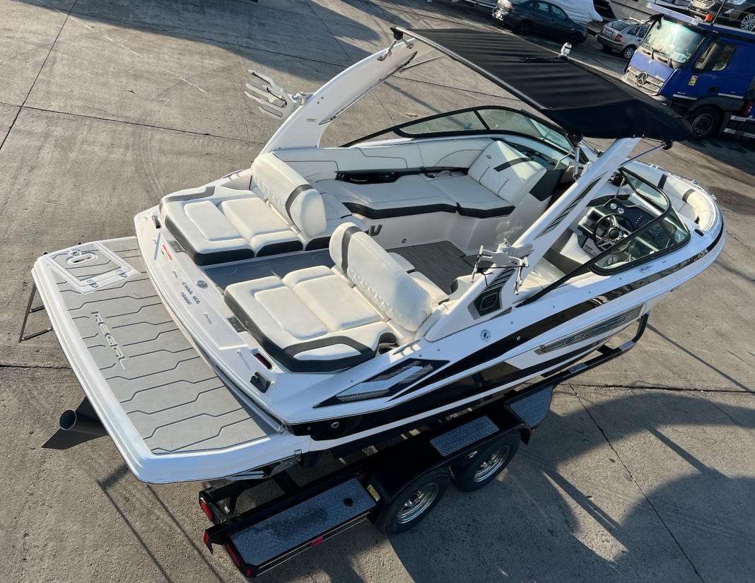 The Regal 2300 RX Surf is designed for those who accept nothing less than top quality. This stylish and versatile sport boat is the perfect choice for wakeboarding, surfing, or simply enjoying a relaxing family day on the water. Powered by a 300-horsepower Volvo Penta V8 engine, it delivers dynamic performance, while the integrated surf system ensures perfect waves every time.